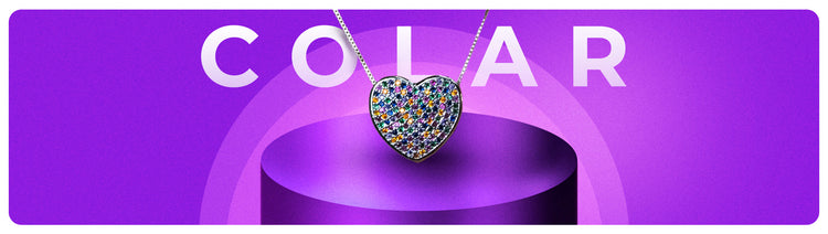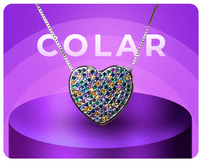 Conjunto Colar E Brinco Coração Cravejado em Zircônias Coloridas Banhado em Prata