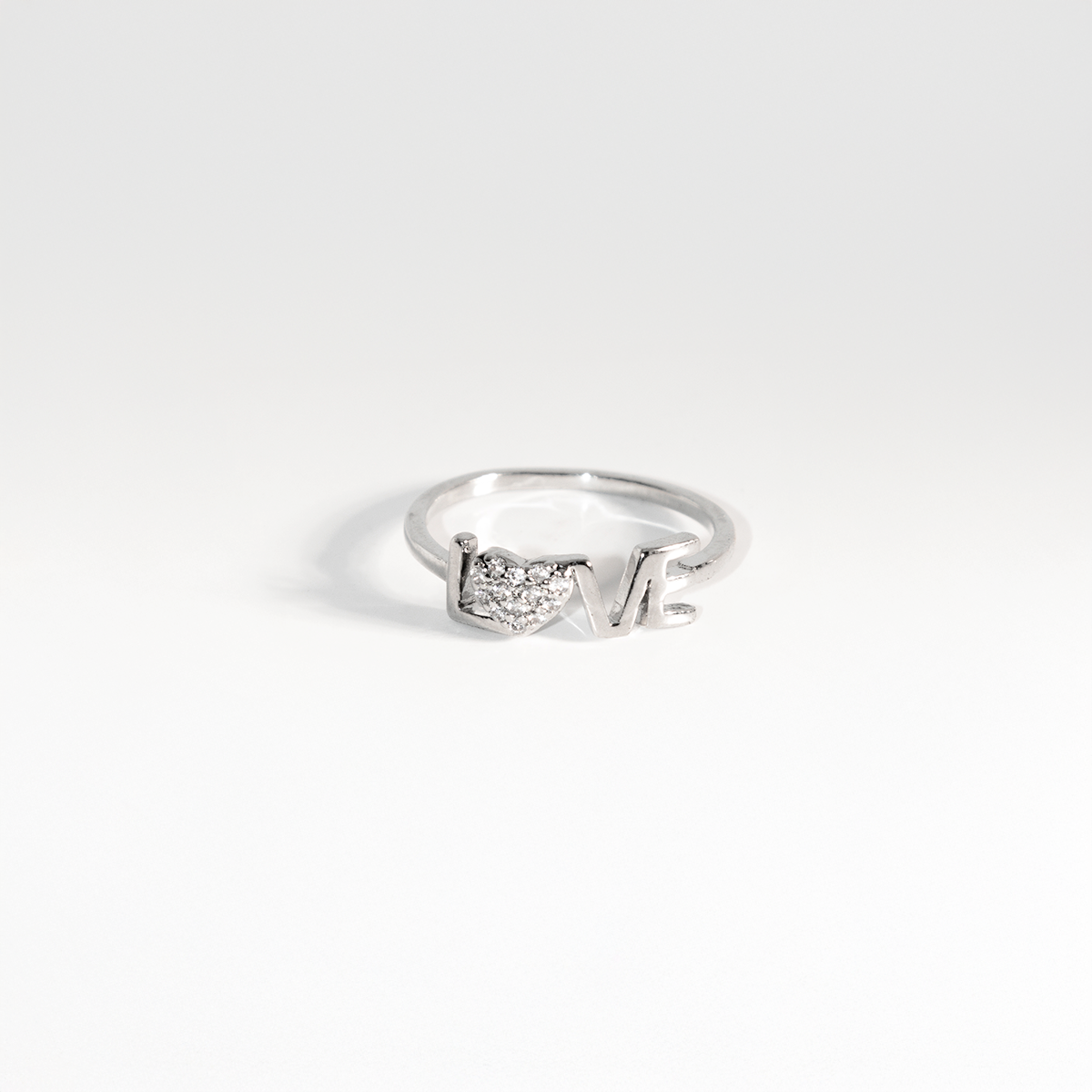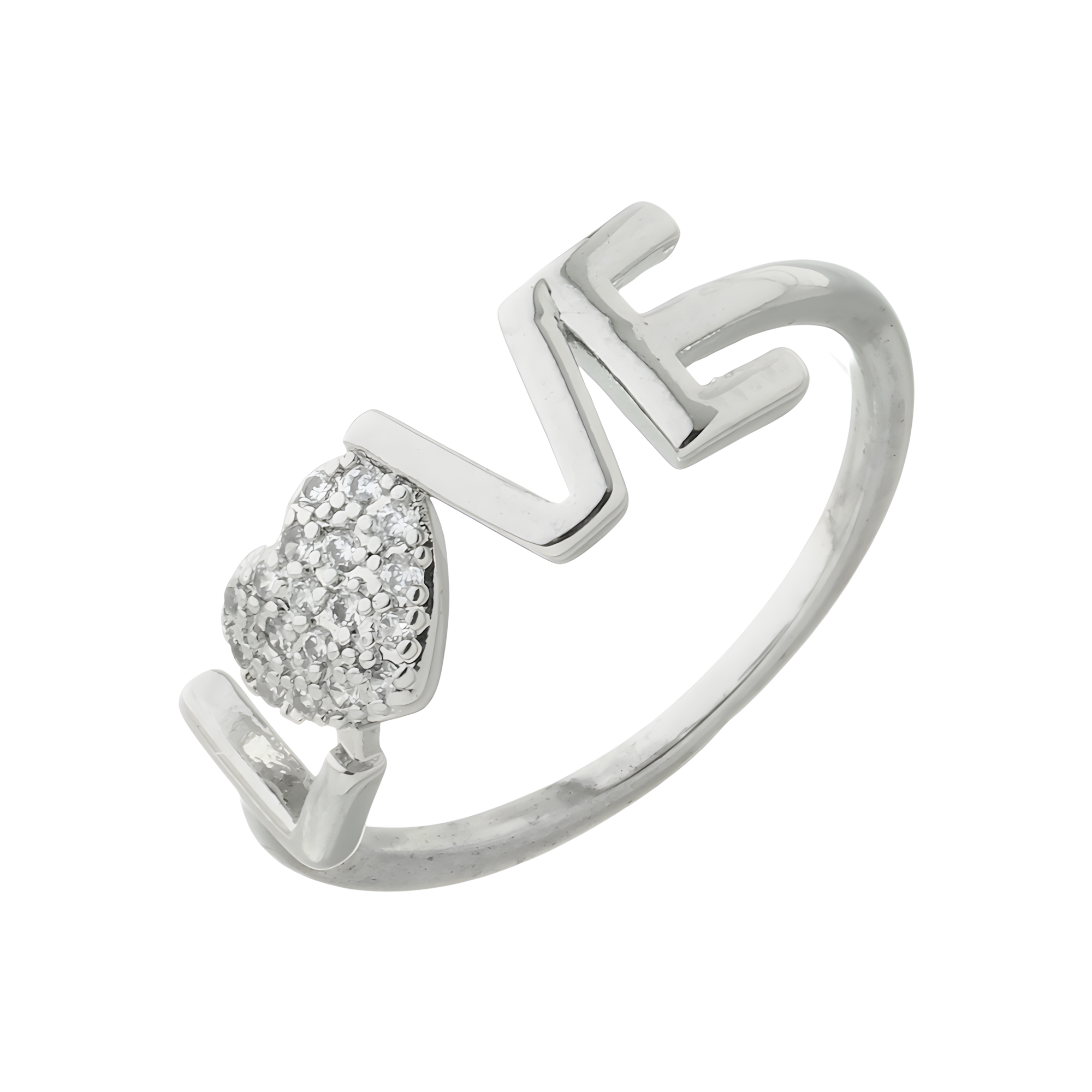 Anel Love Coração Cravejado de Zircônia Banhado Prata