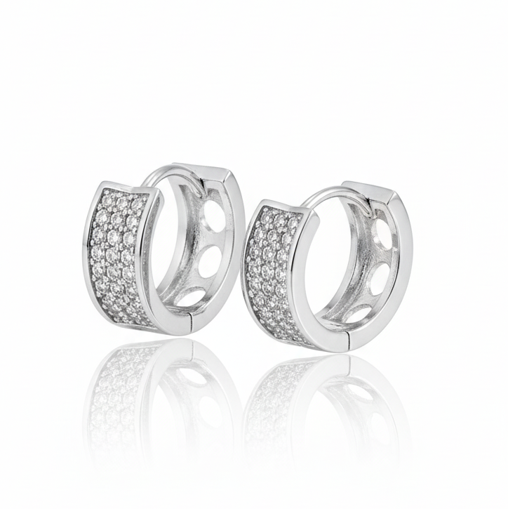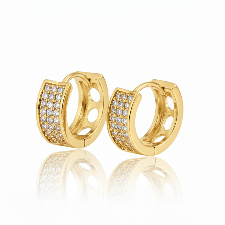 Brinco Argola Cravejado 3 Fileiras Banhado