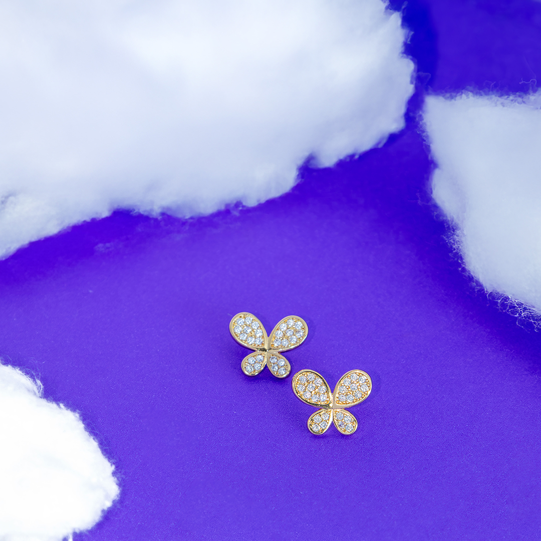 Brinco Borboleta Luz Cravejada Banhado