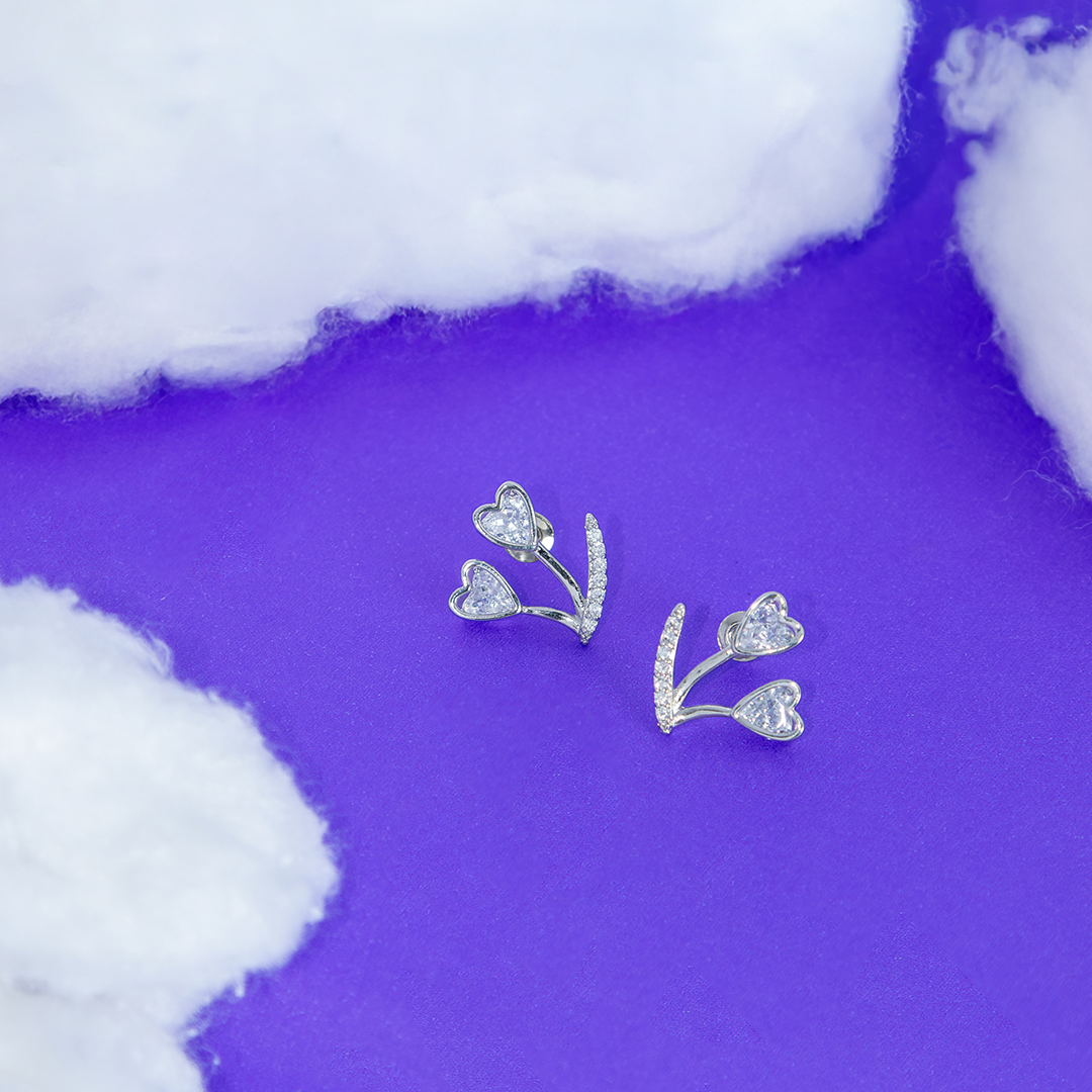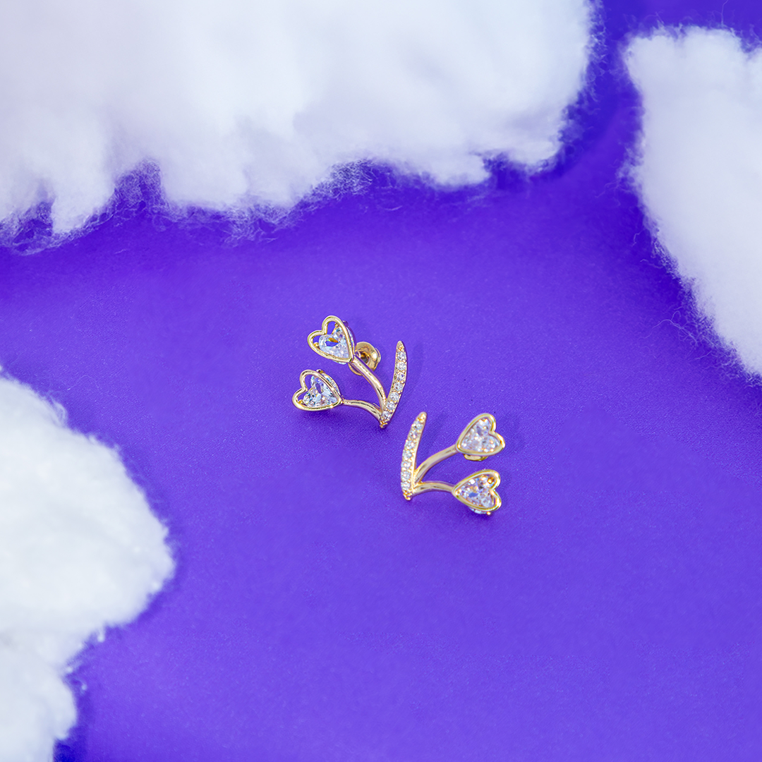 Brinco Flor Duplo Coração Cravejado Banhado