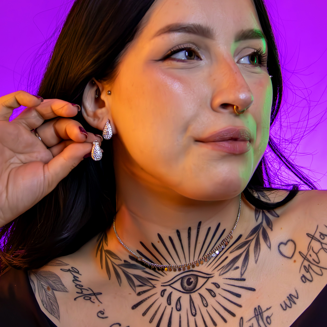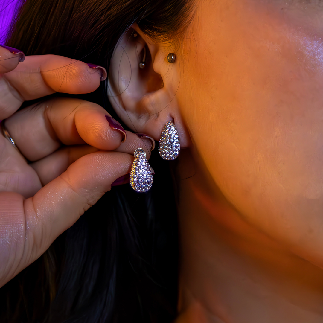 O Brinco Gota Clássica Cravejada Banhado em Prata é a escolha perfeita para quem busca elegância atemporal com um toque de brilho sofisticado. Seu design em formato de gota, completamente cravejado com micro zircônias, reflete a luz de forma delicada e marcante.