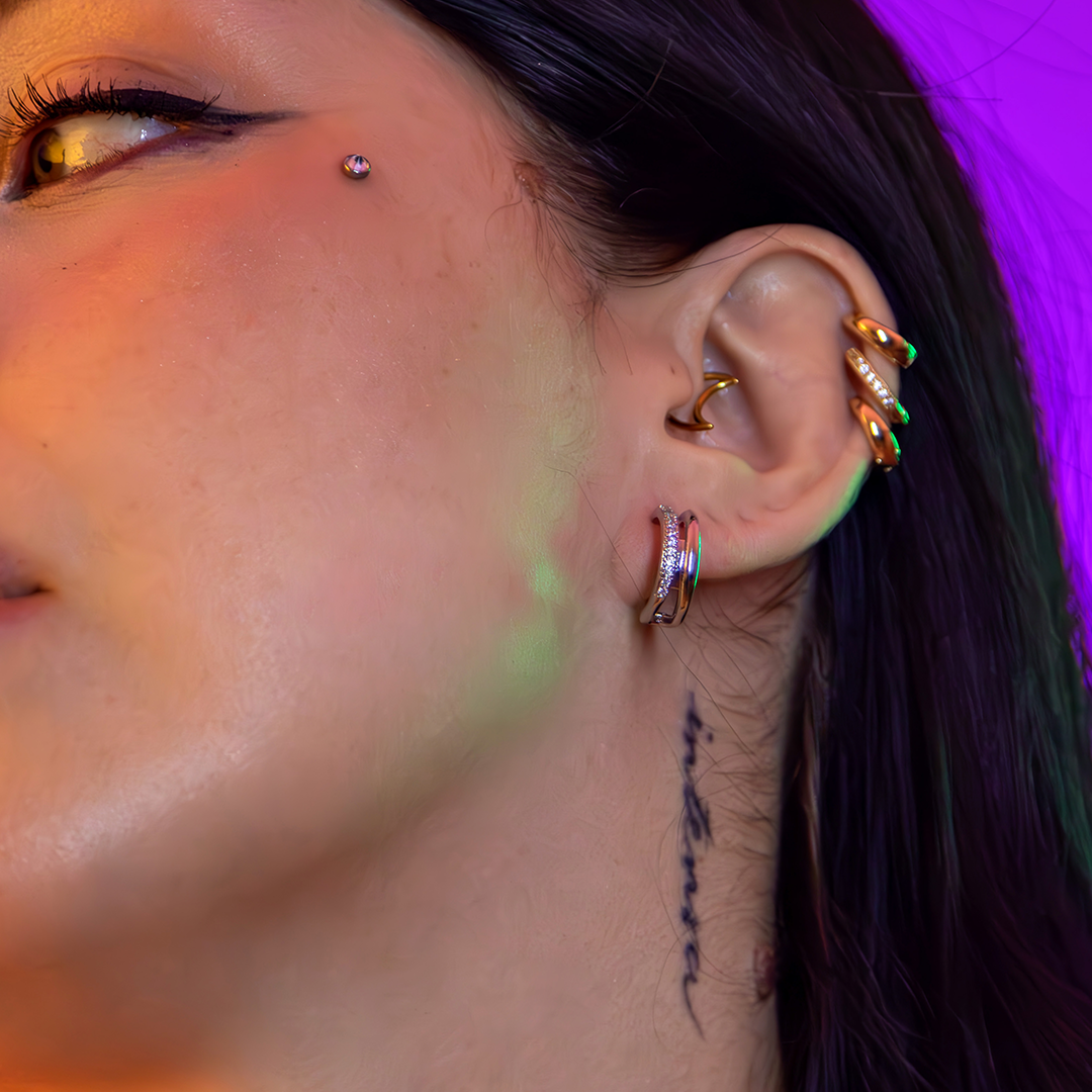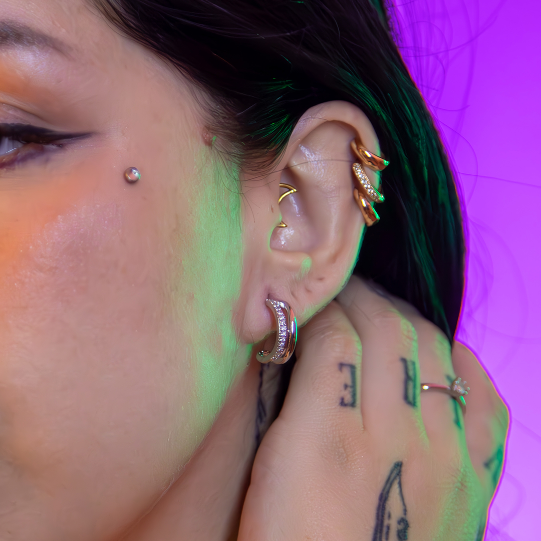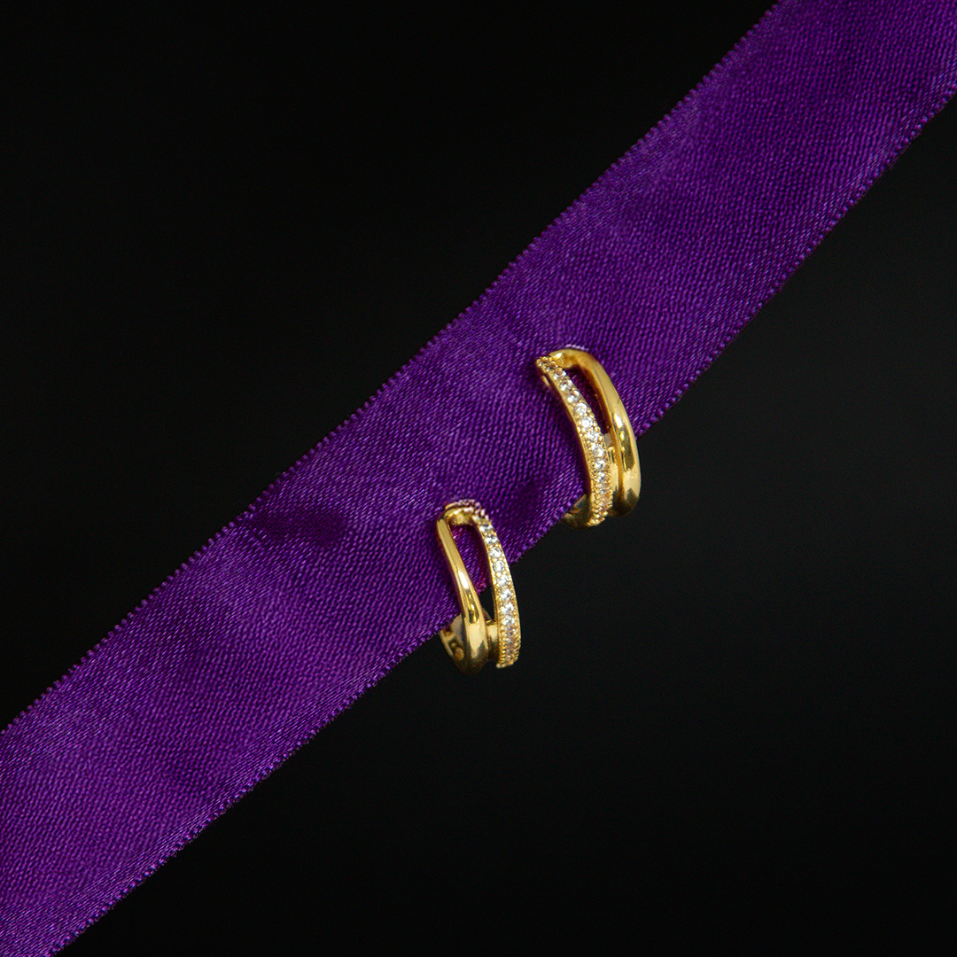 O Brinco Meia Argola Luxo com Zircônias Banhado é a escolha perfeita para quem busca elegância com um toque de brilho discreto. Seu design côncavo e moderno é valorizado por um filete central de micro zircônias, que reflete a luz com delicadeza e sofisticação.