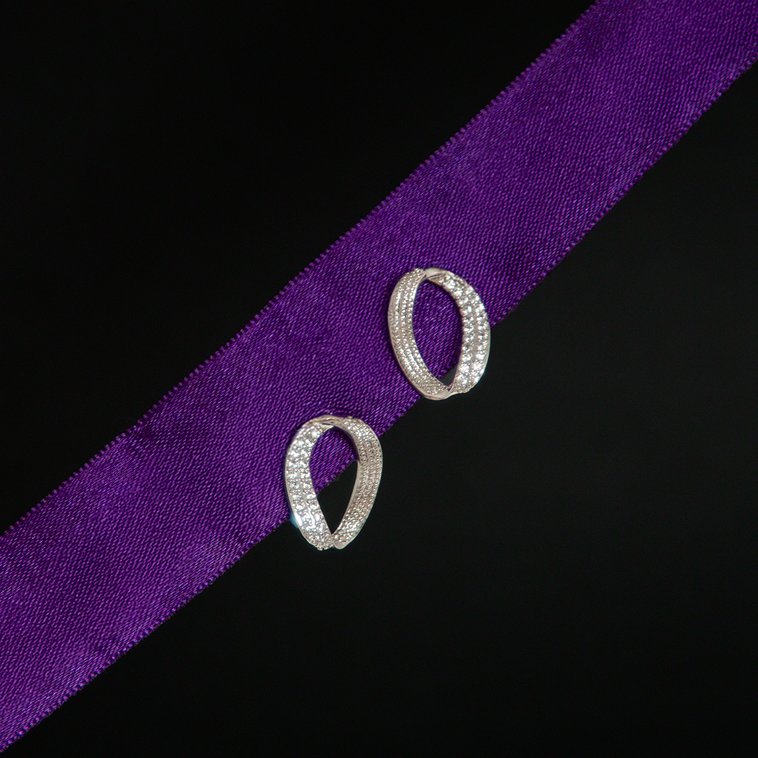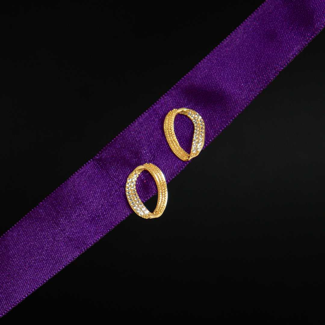 Seu design oval vazado é valorizado por um contorno duplo: um cravejado com micro zircônias que garantem brilho intenso, e outro com textura suave que adiciona sofisticação à peça.