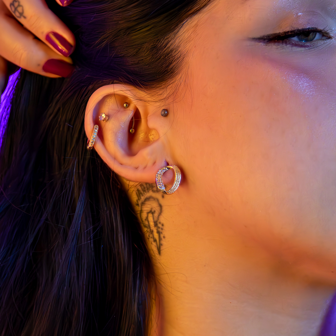 O Brinco Oval Cravejado Contorno Duplo Banhado a Ouro e Prata é sinônimo de elegância moderna. Com 1,6 cm de comprimento, 1,2 cm de largura e apenas 3 gramas, ele oferece o equilíbrio ideal entre presença e conforto para o uso diário ou ocasiões especiais.