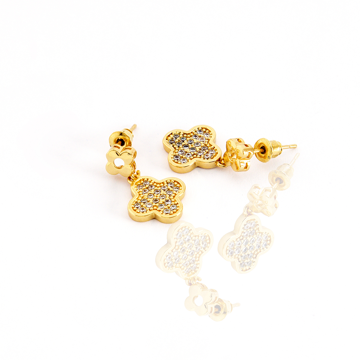 O Brinco Flor Dupla com Zircônias Banhado é a escolha ideal para quem busca um toque de romantismo e sofisticação no visual. Com design delicado composto por duas flores sendo a inferior totalmente cravejada por micro zircônias, essa peça traz leveza, brilho e feminilidade em perfeita harmonia.