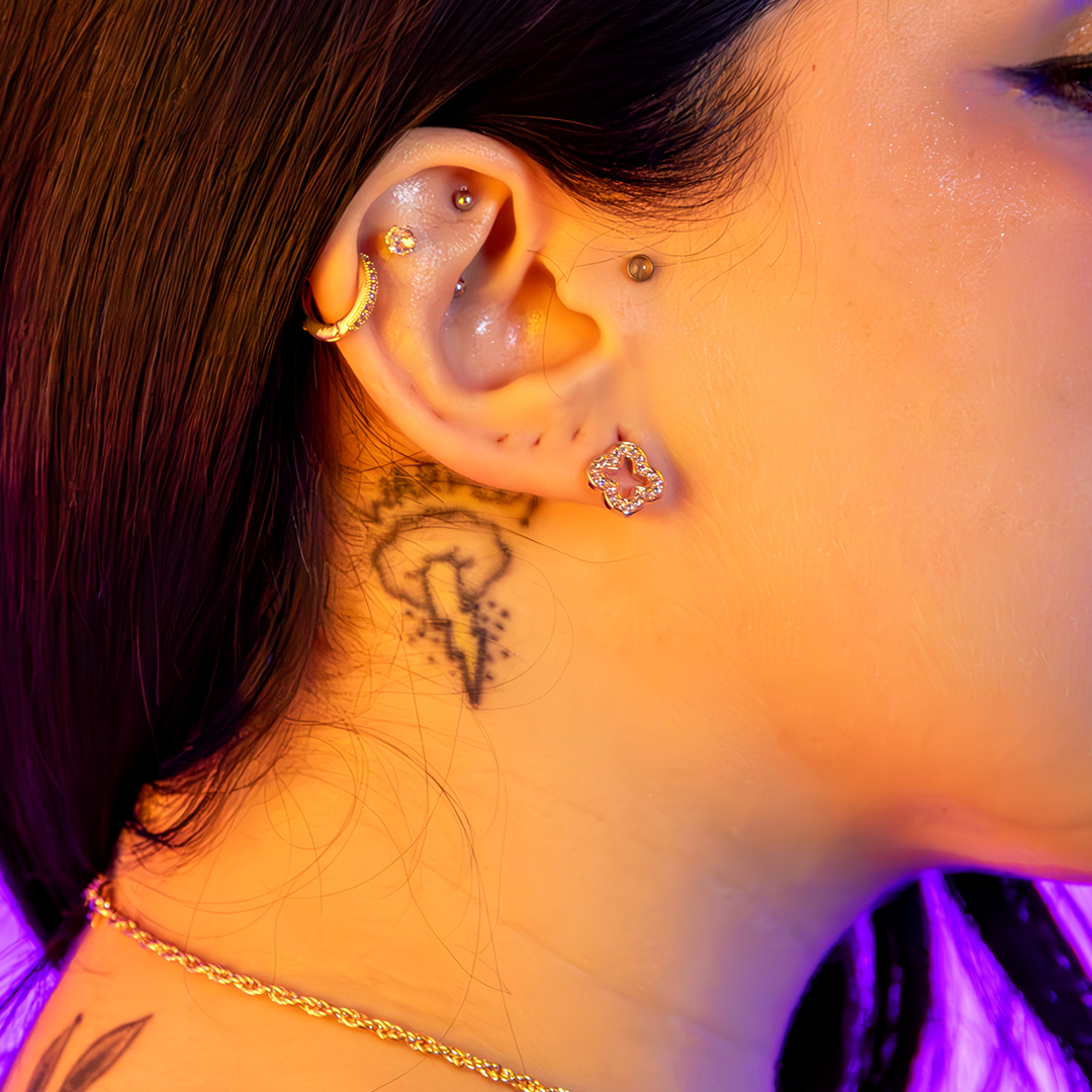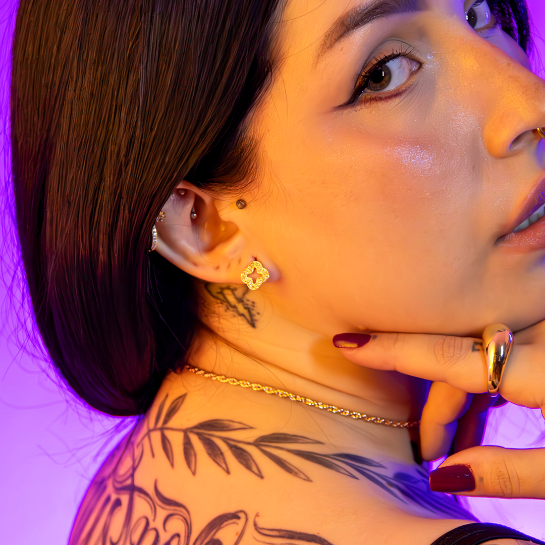 Delicado, elegante e cheio de significado, o Brinco Trevo Vazado com Zircônias é a peça ideal para quem ama joias com charme discreto e toque de sorte. Seu formato de trevo vazado simboliza boas energias e proteção, enquanto o contorno cravejado de micro zircônias adiciona brilho na medida certa.