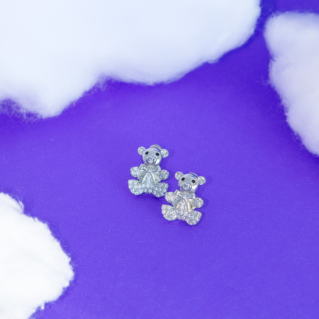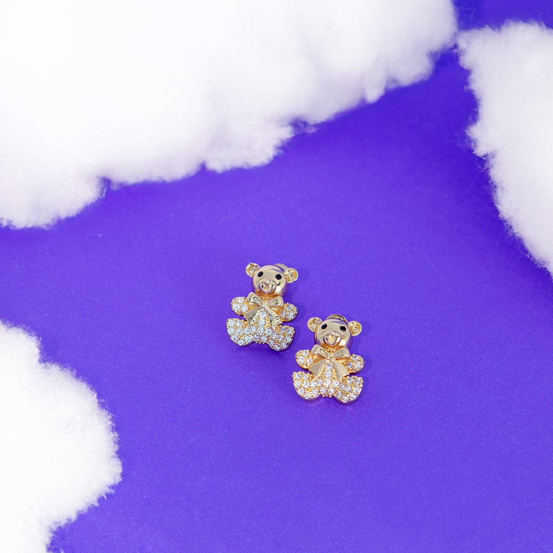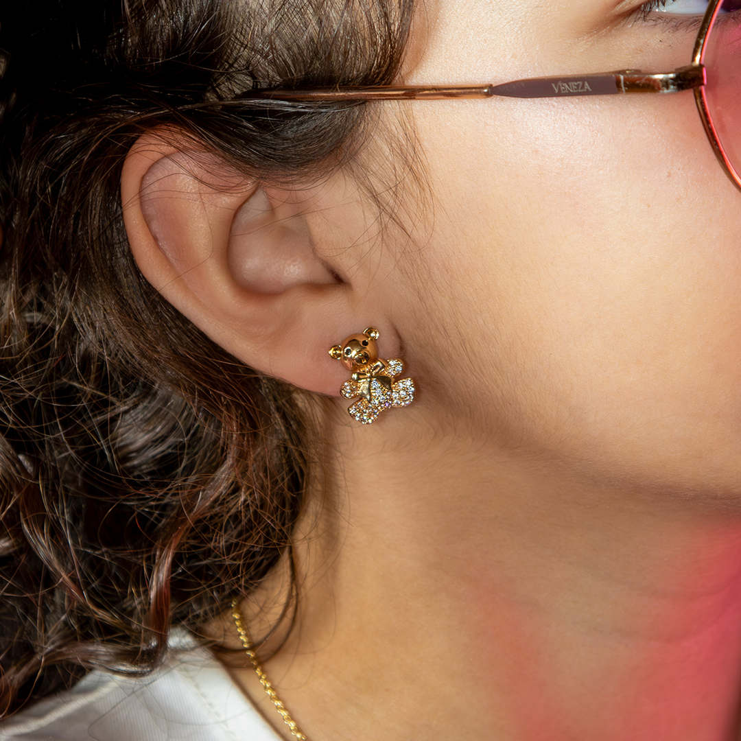 Brinco Ursinho Com Laço E Zircônias Banhado