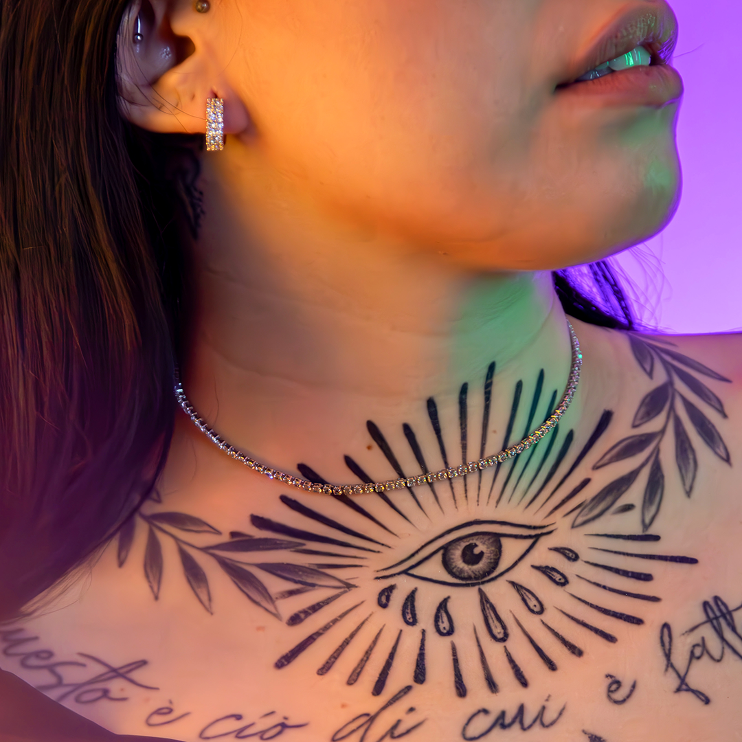 Elegante e deslumbrante, o Colar Choker Riviera é a definição do luxo contemporâneo. Com sua estrutura delicada e cravejada de zircônias reluzentes, este colar adiciona um toque de sofisticação e glamour a qualquer visual. Seu design versátil permite que seja usado sozinho para um estilo minimalista ou combinado com outras peças para um look mais extravagante. Uma escolha perfeita para quem busca adicionar brilho e elegância instantâneos à sua coleção de acessórios.