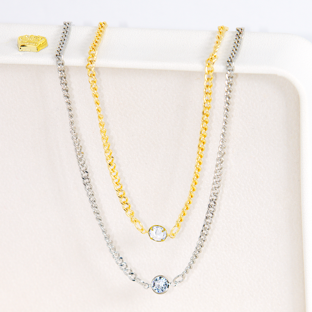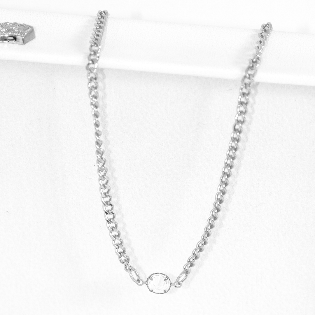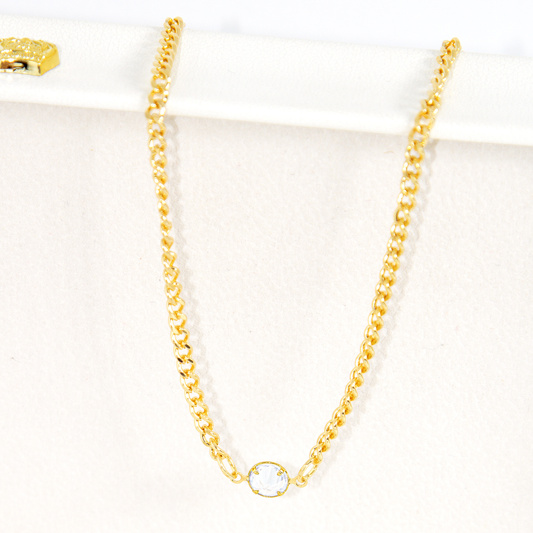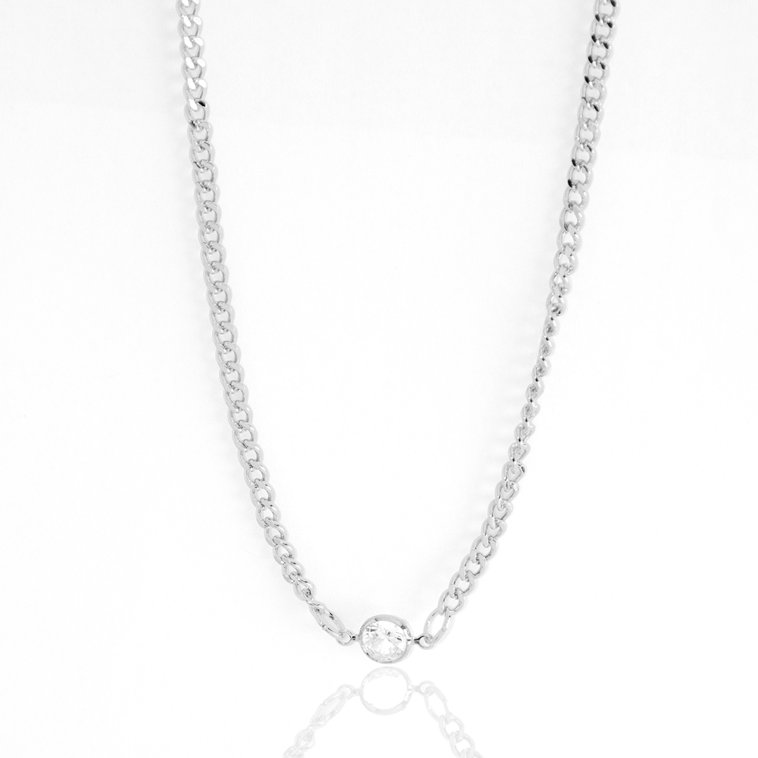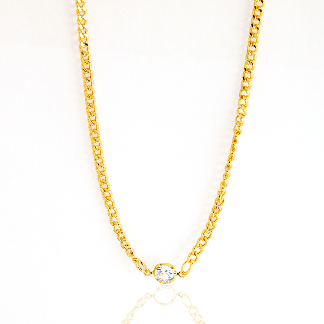 O Colar Corrente Grumet com Ponto de Luz traz a elegância da malha grumet combinada com uma zircônia central que capta a luz com perfeição, criando um contraste moderno e sofisticado.