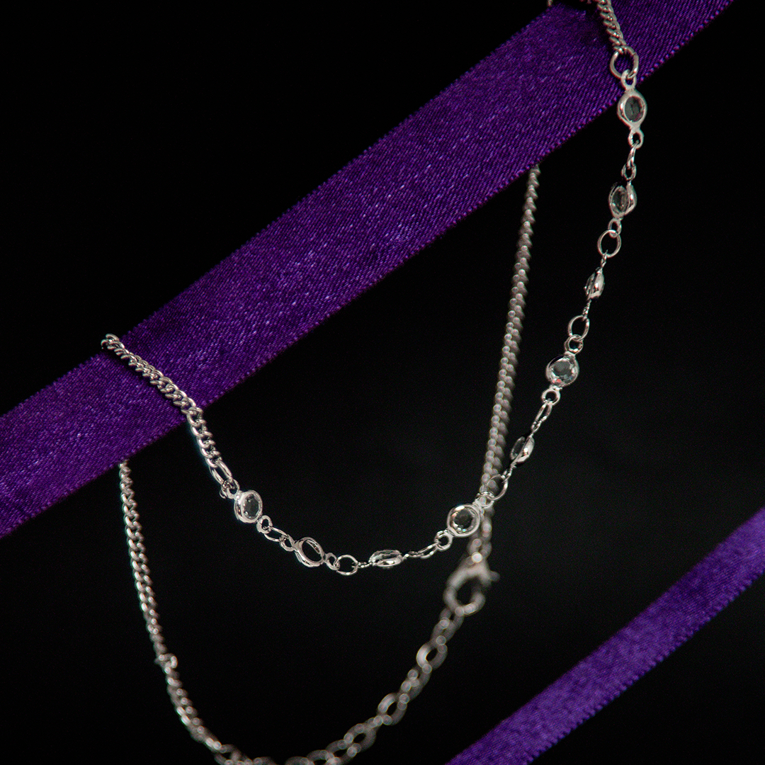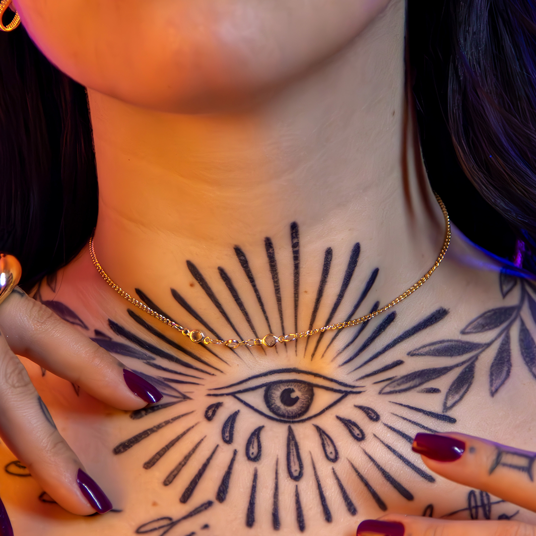 O Colar Cristais Vazados com Corrente Fina é a escolha perfeita para quem busca um acessório delicado, mas com presença. Os cristais lapidados são cravejados em bases vazadas que deixam a luz passar, criando um efeito de brilho natural e contínuo.