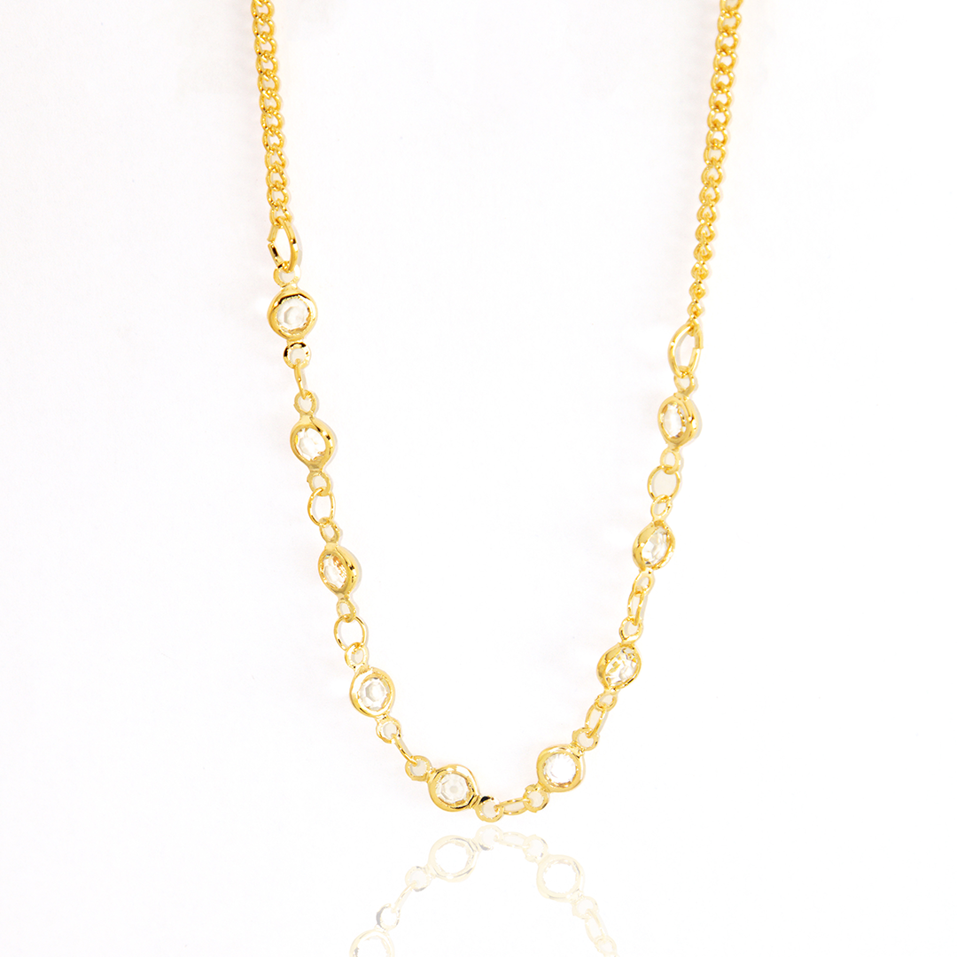 Colar Cristais Vazados com Corrente Fina – 40 cm | 3g