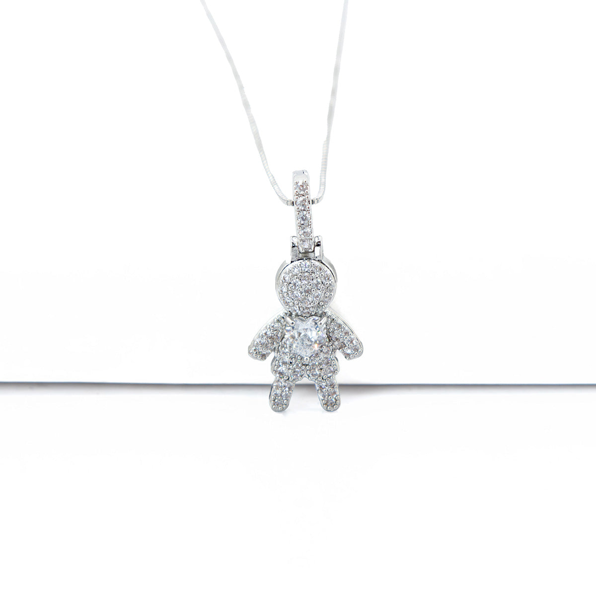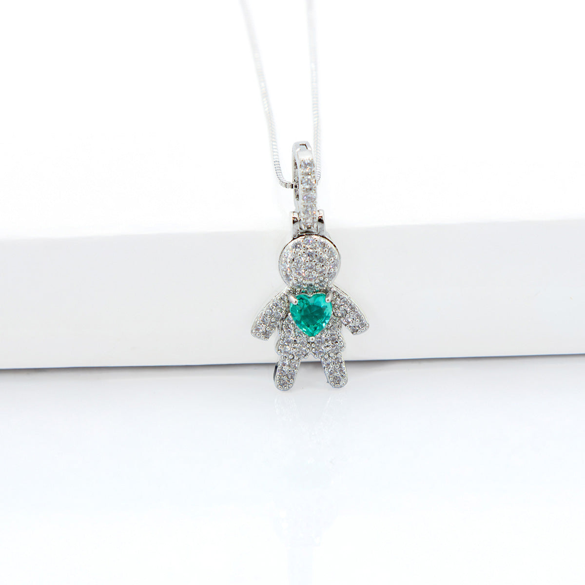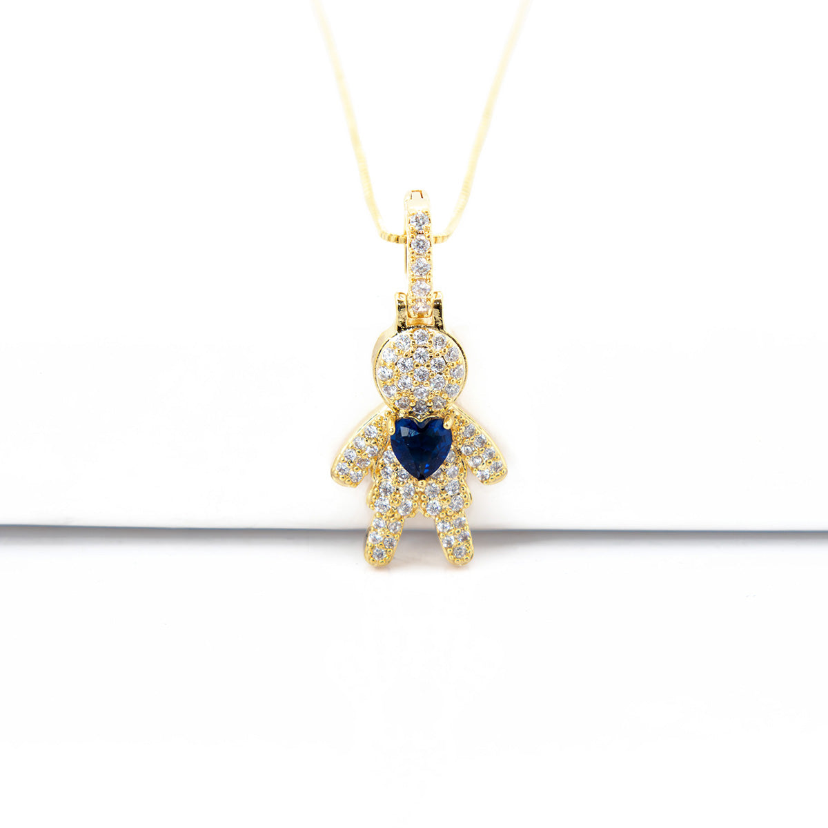 Colar Menino com Pedra de Zircônia em Coração Cravejado em Ouro 18K
